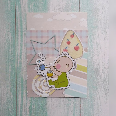 В работе использовала остатки бумаги из детских коллекций, за основу взяла коллекцию  Sweet baby boy от Fabrika Decoru (уж очень мне понравились вырезалки-сладости).